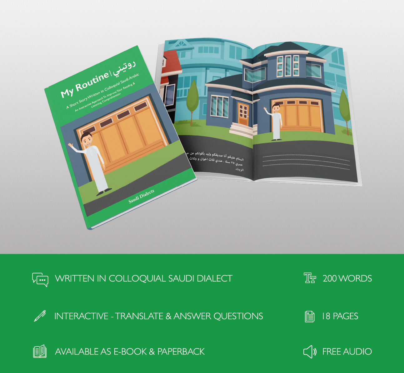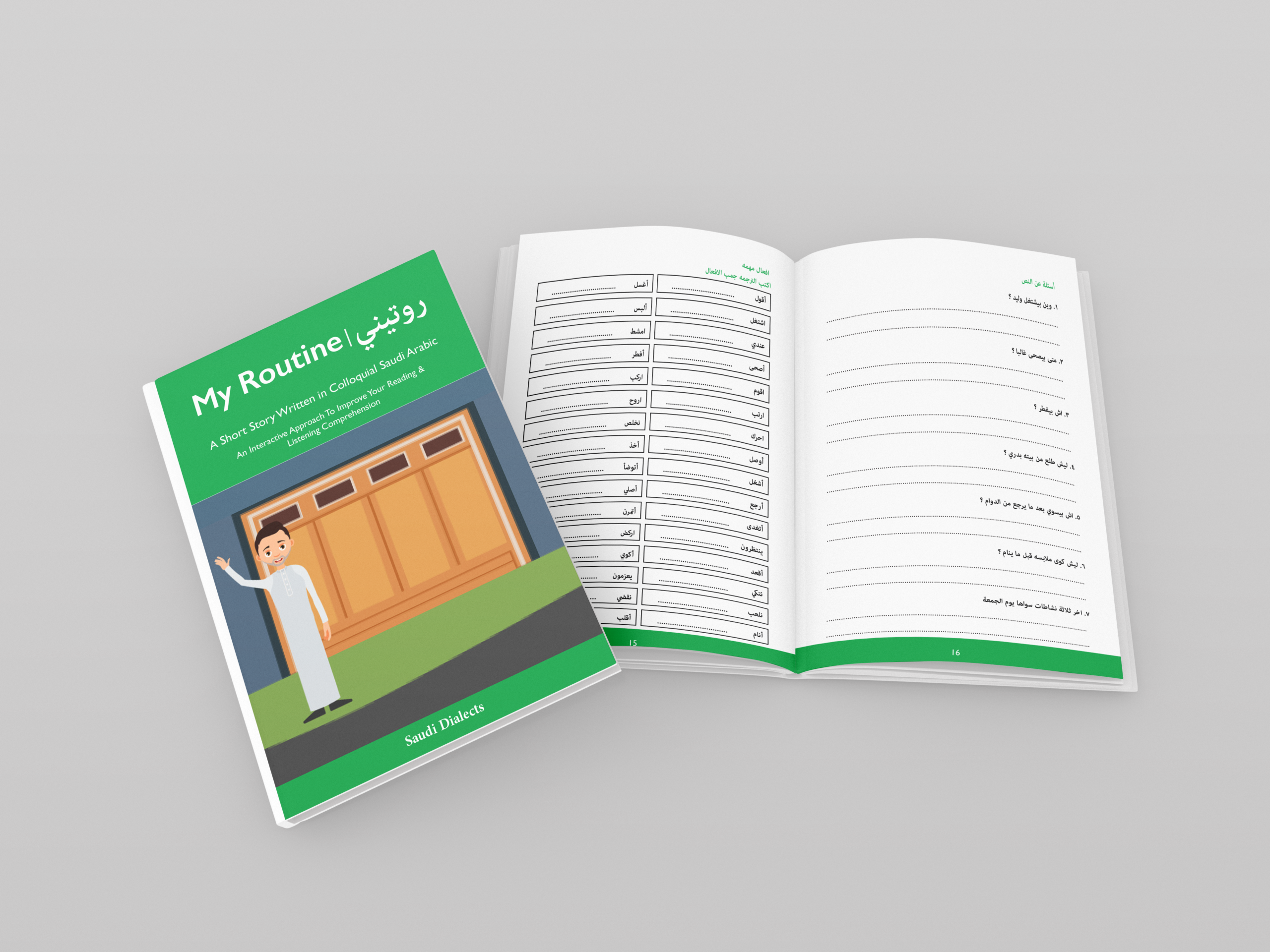 This book focuses on the present tense used to describe routines and habits and contains over 200 words, including 30 verbs, which are used by native Saudi speakers.